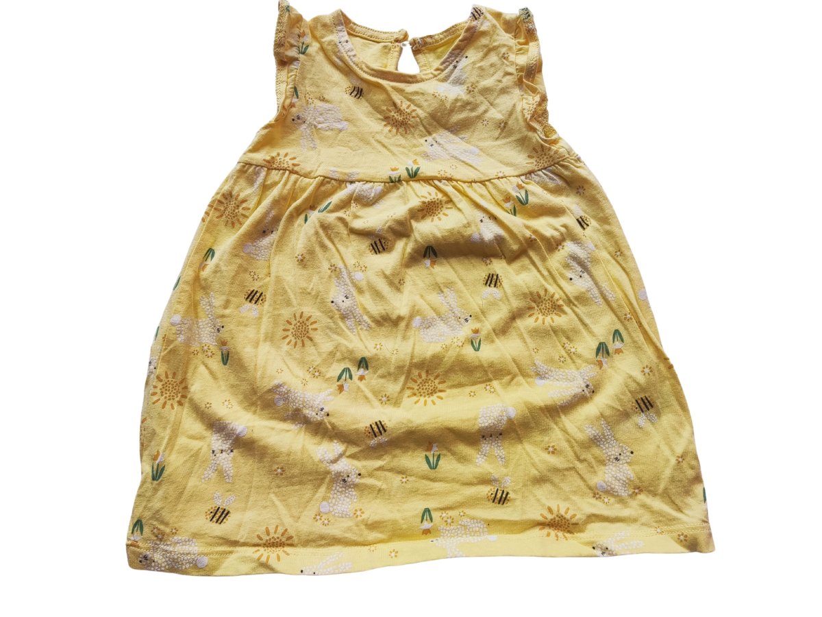 Žluté letní šaty s obrázky secondhand F&F, vel. 74 (6-9m)